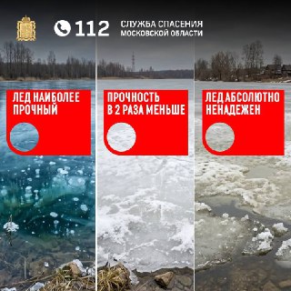 ❗️Система-112 Московской области напоминает: лёд на водоёмах — это всегда риск. Даже если он кажется прочным, его толщина может быть неравномерной.